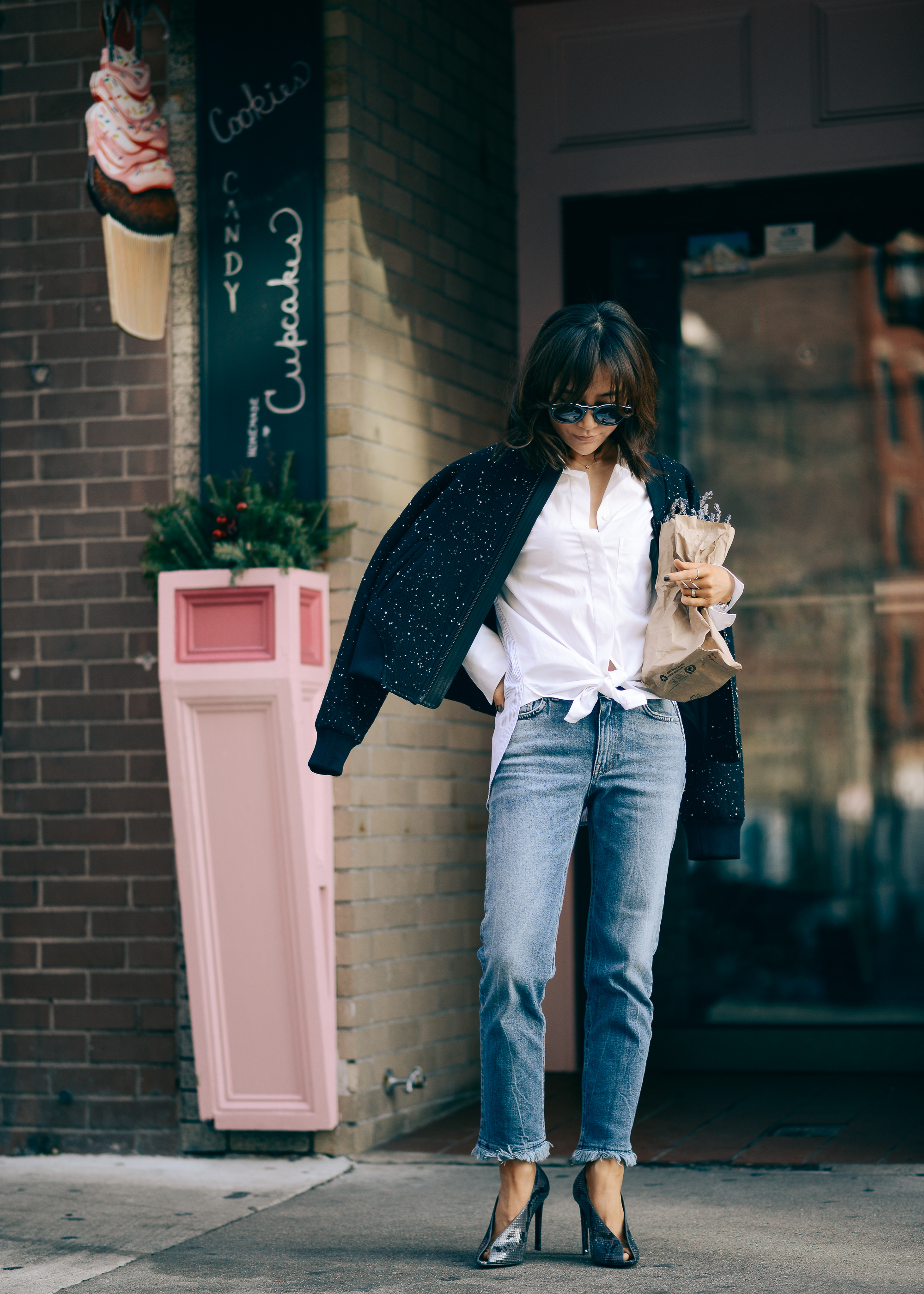 A tie-front shirt has that incredibly tempting retro 60s air going on. It is also the wardrobe equivalent of a chic and fun picnic of meals. I don’t mind the recent temperature swings so I get the opportunity to pretend it’s almost picnic season (which comes easy with real-life